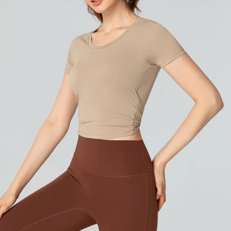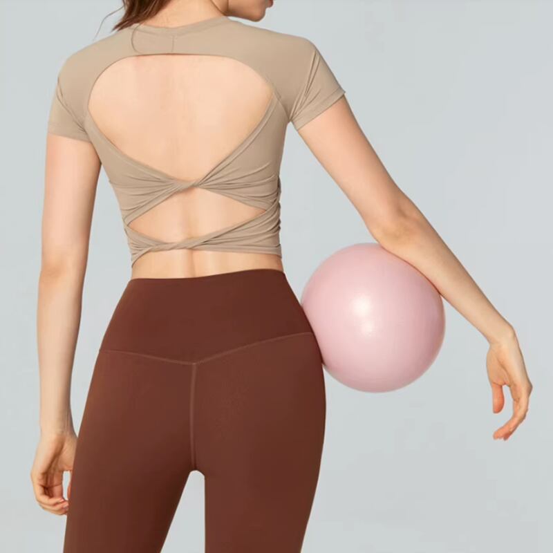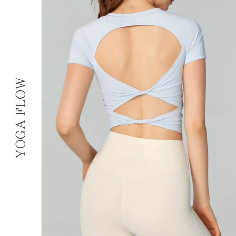 【商品管理番号】 F0002 【商品説明】 ノットをあしらったバックオープンデザインが印象的でセクシーなショート丈Tシャツです。背中が大胆に開いたデザインは、動きやすさを追求し、スポーツシーンから日常のお出かけまで、さまざまなシチュエーションにマッチします。抜群の着心地で、あなたのアクティブライフをサポートします! 【サイズ】 【S】バスト:76-82cm/カップ:70A/B 75A 【M】バスト:83-89cm/カップ:70C/D/E 80B/C 80A 【L】バスト:90-95cm/カップ:75C/D/E 80B/C 85A 【XL】バスト:96-102cm/カップ:80D/E 85B/C/D 【カラー】 ブルー ピンク ベージュ ブラック 【素材】 ナイロン87%/ポリウレタン13%