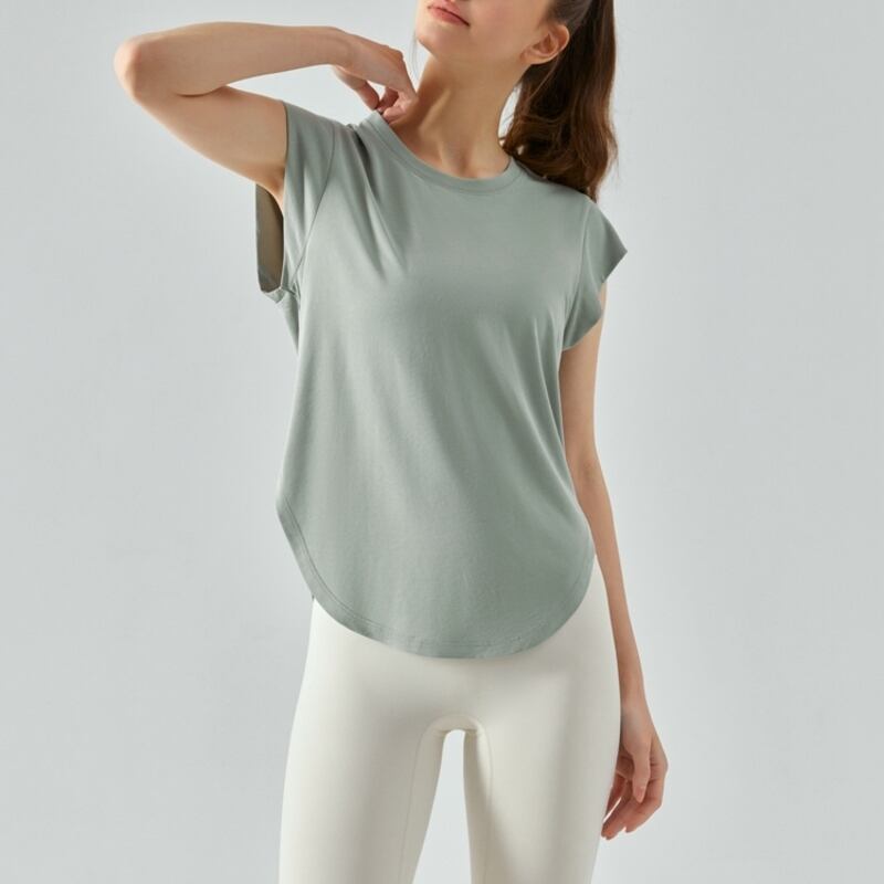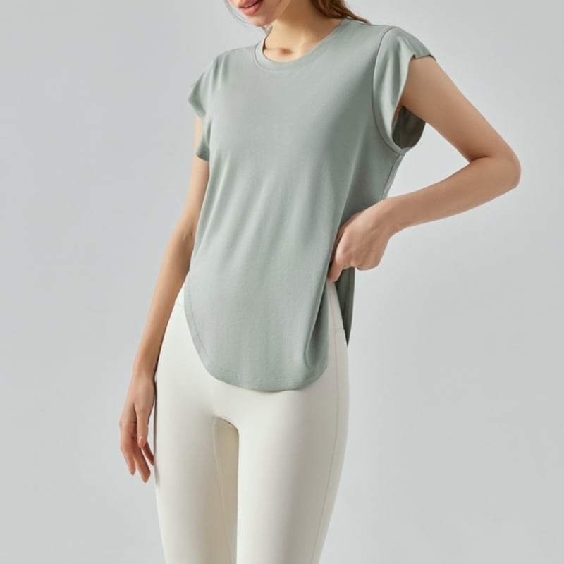 【商品管理番号】 F0013 【商品説明】 フレンチスリーブとシンプルなラウンドヘムが上品な半袖Tシャツです。優れたデザイン性で、カジュアルからスポーツまで幅広いシーンで活躍します。シェイプされたウエスト周りがスタイルを整えて、すっきりとしたシルエットを実現。ベーシックながらこれ一枚でコーディネートの幅が広がる、おしゃれなアイテムです! 【サイズ】 【S】バスト:86cm/ウエスト:82cm/着丈:60cm 【M】バスト:90cm/ウエスト:86cm/着丈:61cm 【L】バスト:94cm/ウエスト:90cm/着丈:62cm 【XL】バスト:98cm/ウエスト:94cm/着丈:63cm 【カラー】 グリーン ピンク パープル ネイビー ホワイト 【素材】 ポリエステル90%/ポリウレタン10%