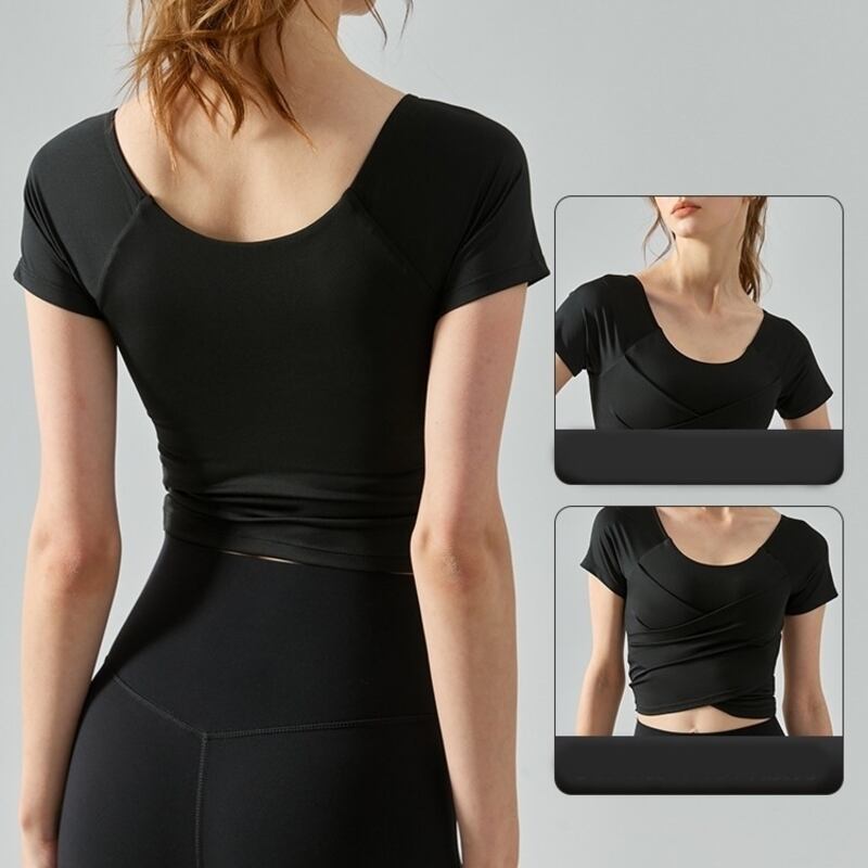 【商品管理番号】 F0021 【商品説明】 タイトなフロントクロスデザインが印象的でセクシーなショート丈Tシャツです。短めでミニマルなデザインは動きやすさを追求し、スポーツシーンから日常のお出かけまで、さまざまなシチュエーションにマッチします。抜群の着心地で、あなたのアクティブライフをサポートします! 【サイズ】 【S】バスト:34cm/アンダーバスト:28cm/着丈:38.5cm 【M】バスト:36cm/アンダーバスト:30cm/着丈:40cm 【L】バスト:38cm/アンダーバスト:32cm/着丈:41.5cm 【XL】バスト:40cm/アンダーバスト:34cm/着丈:43cm 【カラー】 ブラック グリーン イエロー パープル 【素材】 ポリエステル88%/ポリウレタン12%