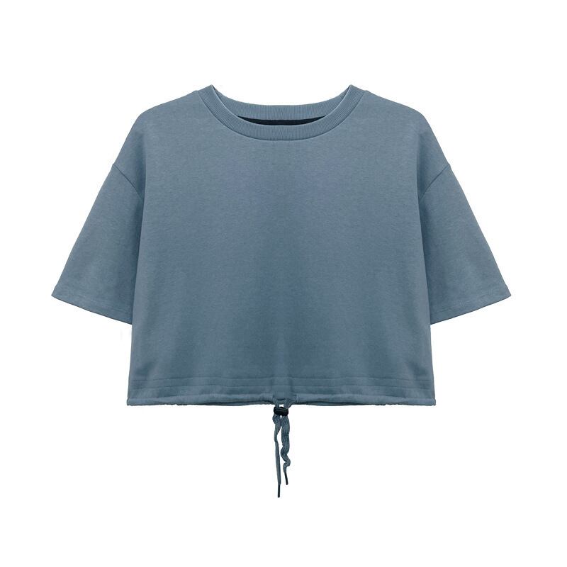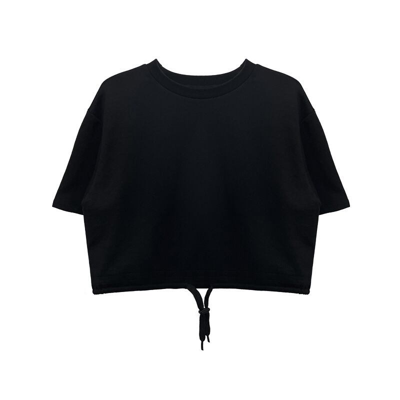 【商品管理番号】 F0029 【商品説明】 ウエストのドローストリングを絞ることで、ふんわりとしたシルエットにアレンジできるショート丈Tシャツです。シンプルなクルーネックとドロップショルダーが、リラックスしたラフな印象を演出します。使い回しに優れたアイテムで、あなたのアクティブライフをサポートします! 【サイズ】 【FREE】バスト:70cm/アンダーバスト:67cm/着丈:38cm 【カラー】 ブラック ブルー ピンク 【素材】 コットン82%/ポリウレタン18%