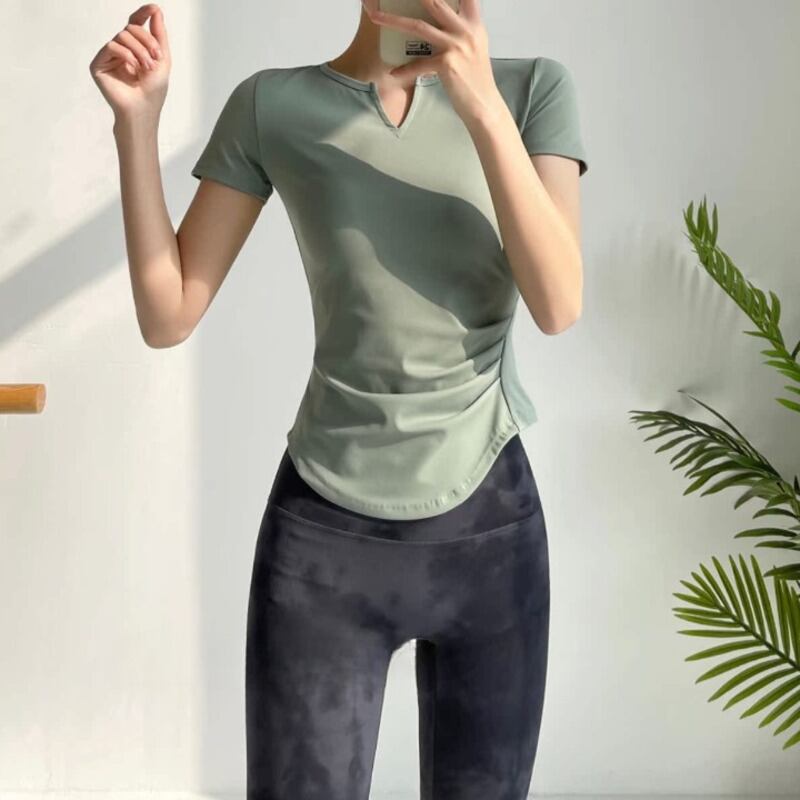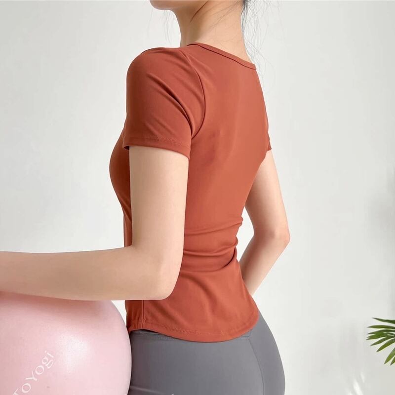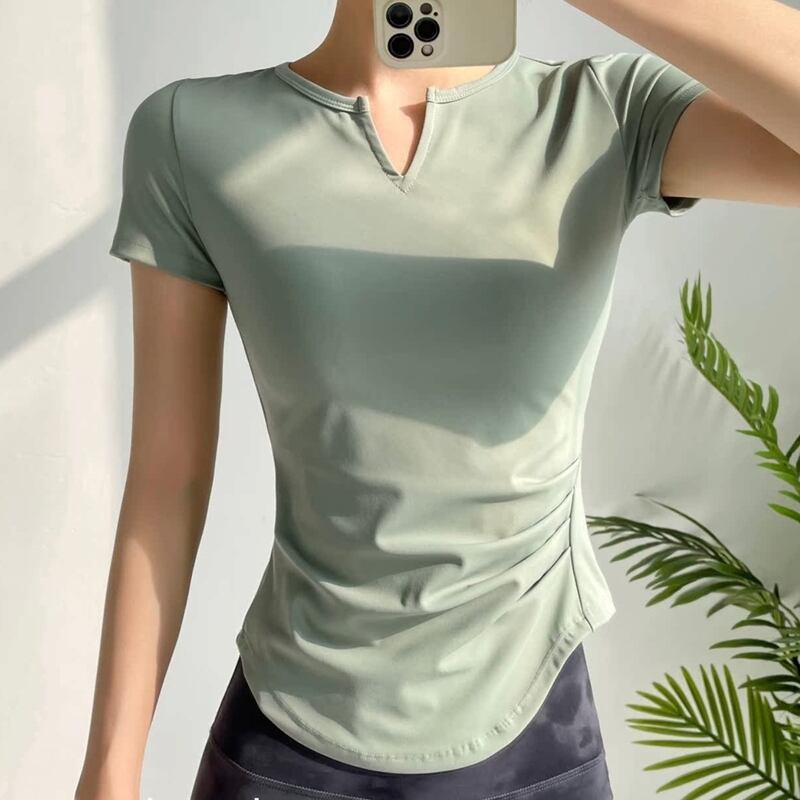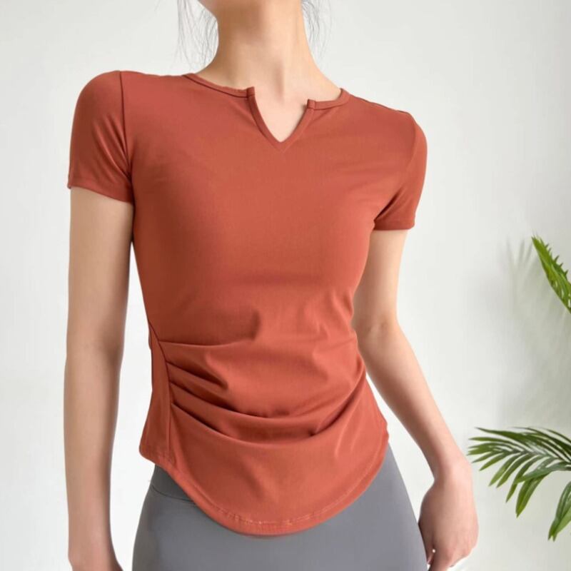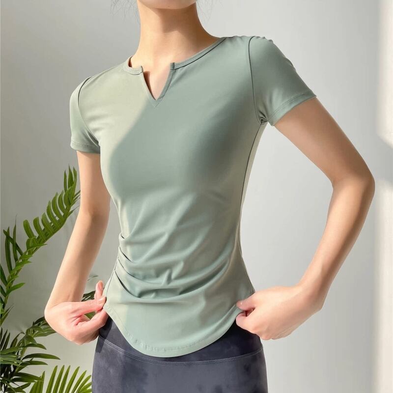 【商品管理番号】 F0032 【商品説明】 スリムなシルエットがボディラインにフィットするタイトなサイドギャザーTシャツです。短めでミニマルなデザインは動きやすさを追求し、スポーツシーンから日常のお出かけまで、さまざまなシチュエーションにマッチします。抜群の着心地で、あなたのアクティブライフをサポートします! 【サイズ】 【S】バスト:72cm/裾まわり:74cm/着丈:53cm 【M】バスト:76cm/裾まわり:76cm/着丈:54cm 【L】バスト:80cm/裾まわり:78cm/着丈:55cm 【XL】バスト:84cm/裾まわり:80cm/着丈:56cm 【カラー】 ブラック ホワイト グリーン オレンジ ブルー 【素材】 ナイロン75%/ポリウレタン25%