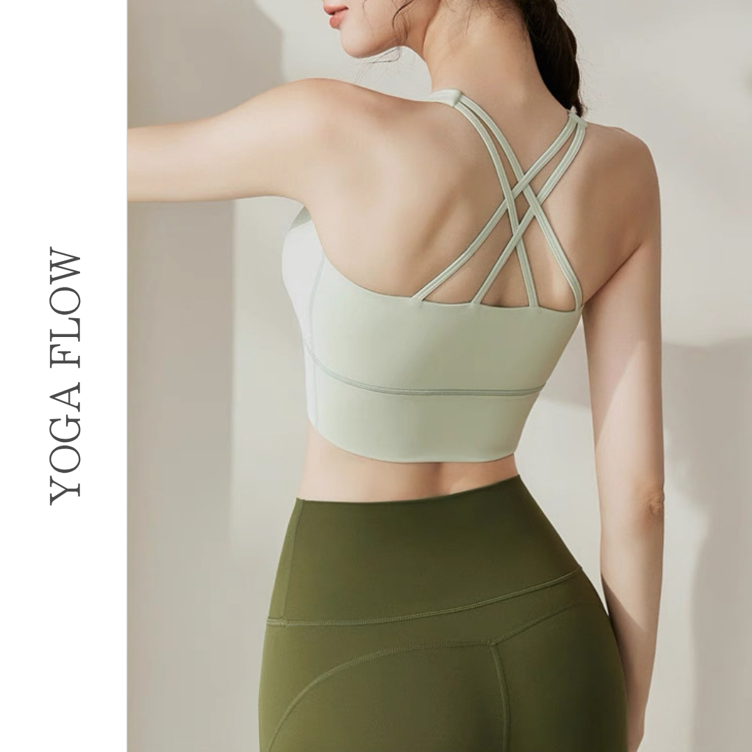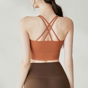 【商品管理番号】 F0115 【商品説明】 背中のクロスデザインが抜け感をつくるブラトップ。 胸元のギャザーでやさしくフィットし、動きやすさと安定感を両立。 ヨガやワークアウト、リラックスタイムにも使える一枚です。 【サイズ】 【S】バスト:66cm/着丈:37.6cm/裾まわり:56cm/肩紐長さ:20cm 【M】バスト:70cm/着丈:38.9cm/裾まわり:60cm/肩紐長さ:21.4cm 【L】バスト:74cm/着丈:40.2cm/裾まわり:64cm/肩紐長さ:22.8cm 【XL】バスト:78cm/着丈:41.5cm/裾まわり:68cm/肩紐長さ:24.2cm 【カラー】 グリーン ホワイト ピンク ブラウン 【素材】 ナイロン80%/スパンデックス20%