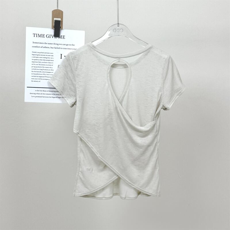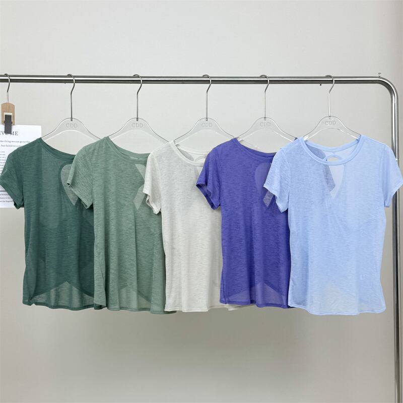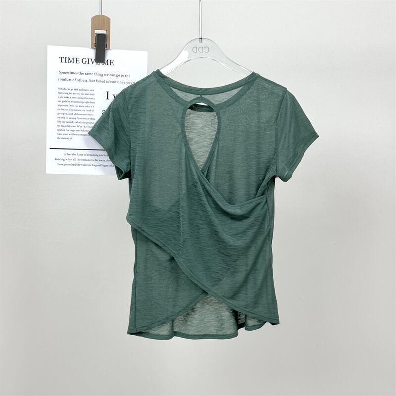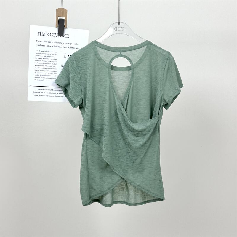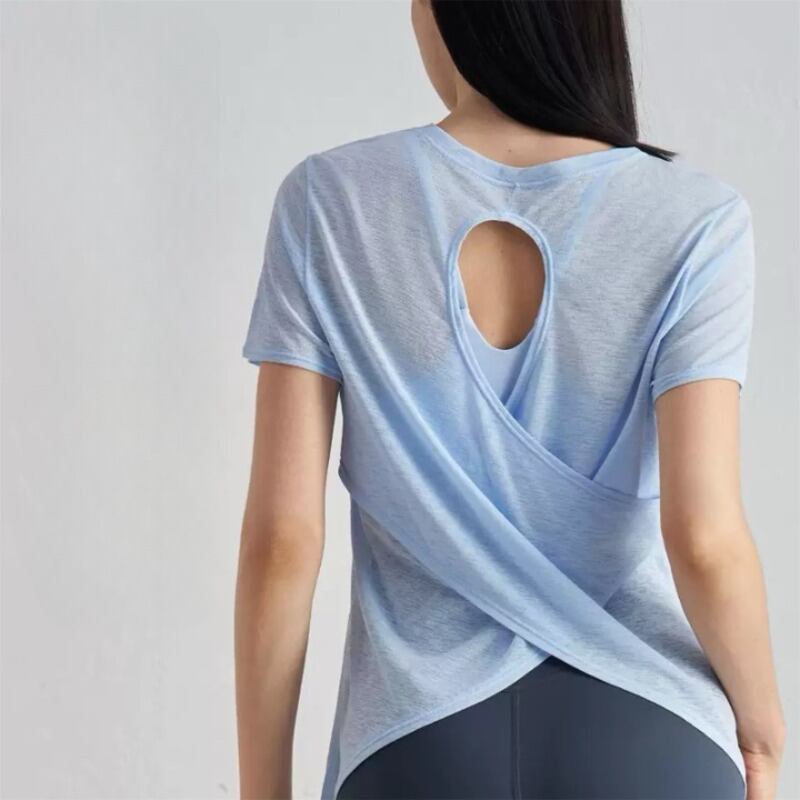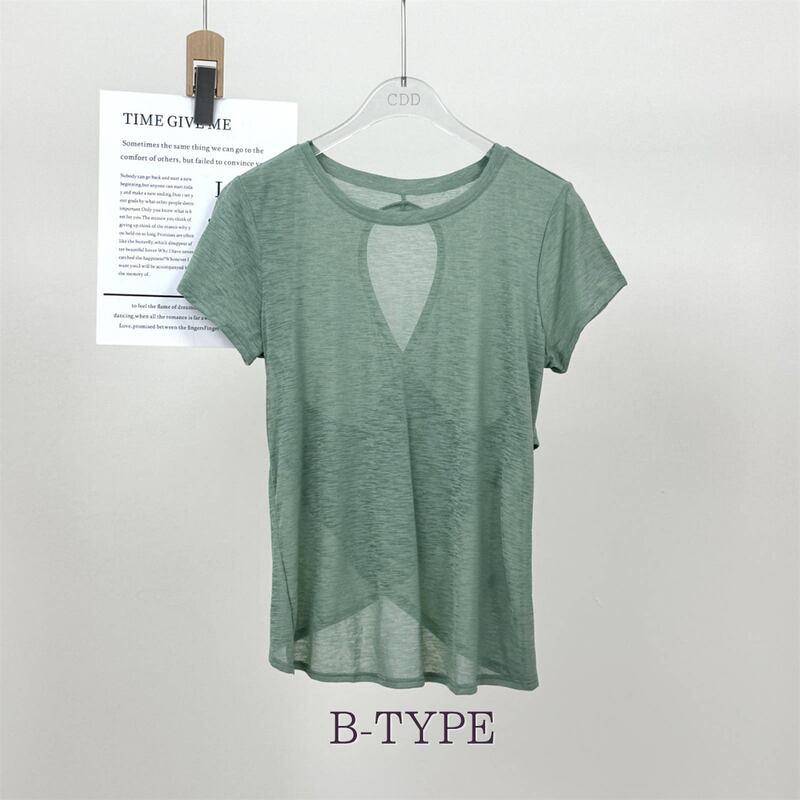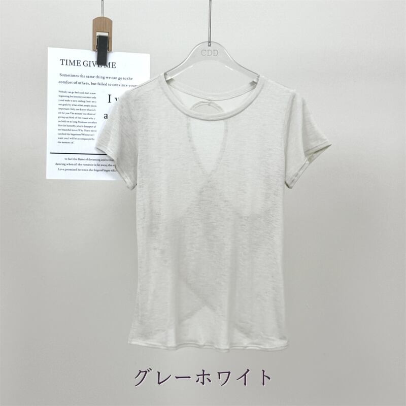 【商品管理番号】 F0034 【商品説明】 バッククロスとバックオープンデザインが特徴の、セクシーなシアーTシャツです。透け感のある素材が魅力を引き立て、女性らしさを引き出します。短めでミニマルなデザインは動きやすさを追求し、スポーツシーンから日常のお出かけまで、さまざまなシチュエーションにマッチします。あなたのアクティブライフをサポートします! 【サイズ】 【S】バスト:44cm/袖丈:15.5cm/着丈:62cm 【M】バスト:46.5cm/袖丈:16cm/着丈:64cm 【L】バスト:49cm/袖丈:16.5cm/着丈:68cm 【XL】バスト:51.5cm/袖丈:17cm/着丈:70cm 【カラー】 グレーホワイト パープル ブルー A-TYPE ダークグリーン B-TYPE ミントグリーン 【素材】 ポリエステル100%