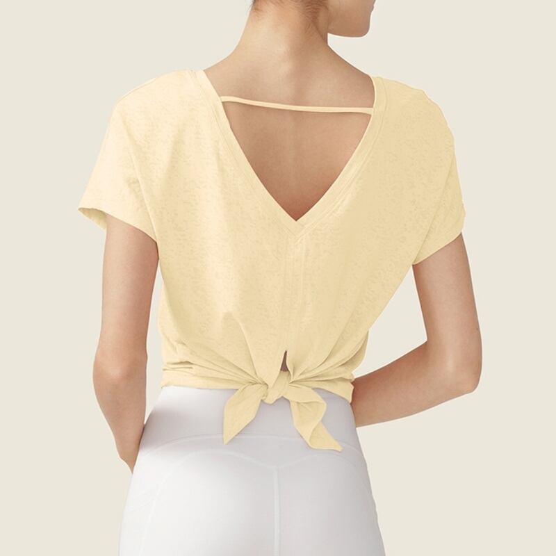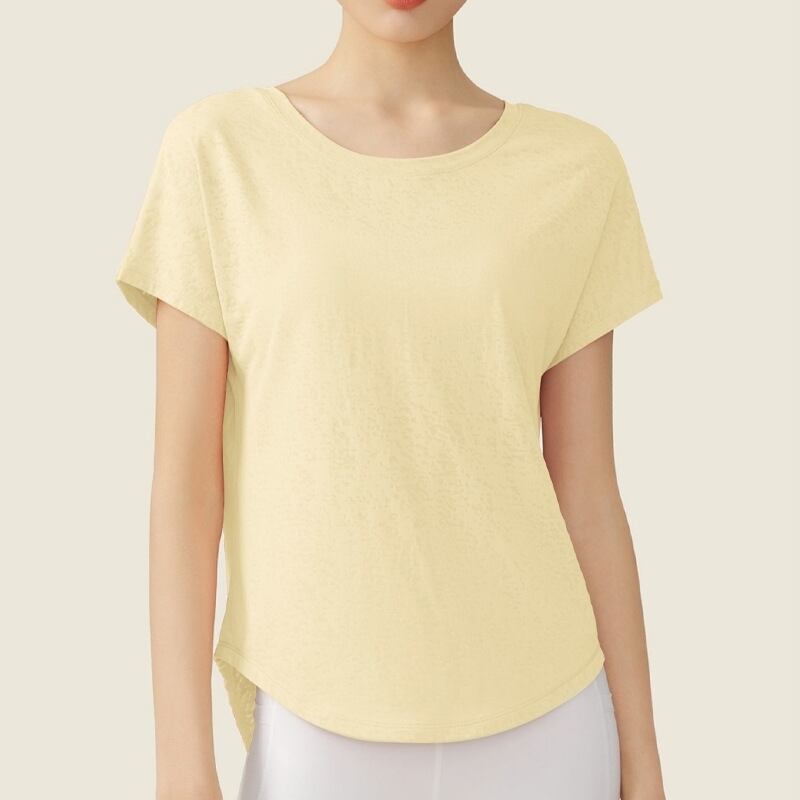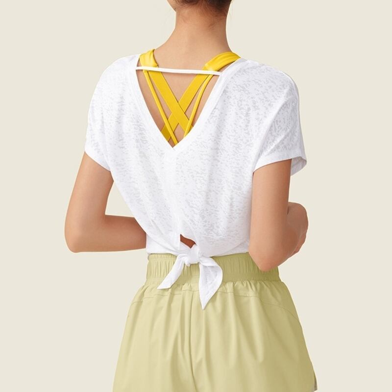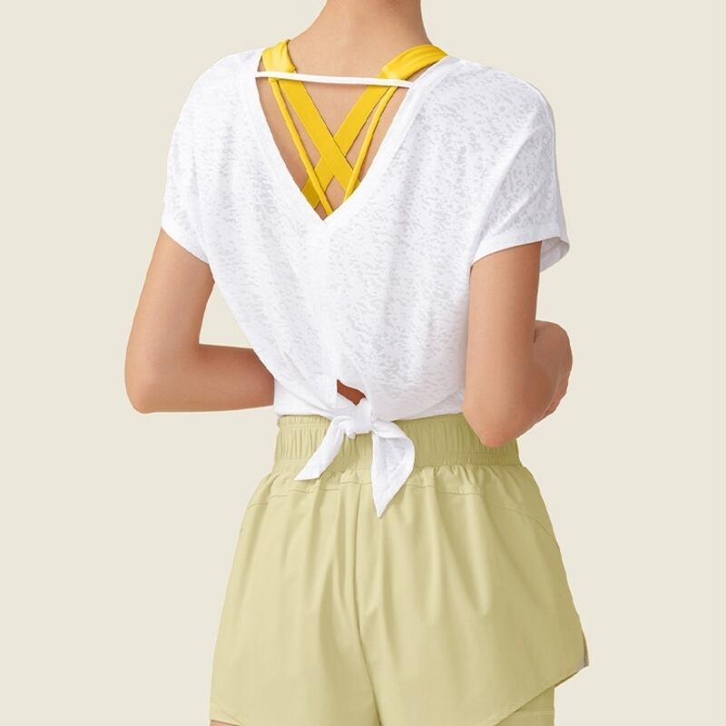【商品管理番号】 F0042 【商品説明】 深めスリットとバックのストラップデザインが特徴のTシャツです。トレンドを取り入れつつ、こなれた印象を与える一着となっており、スポーツシーンから日常のお出かけまで、さまざまなシチュエーションにマッチします。シンプルなデザインが着回しやすく、あなたのアクティブライフをサポートします! 【サイズ】 【S】バスト:88cm/袖丈:22.7cm/裾まわり:90cm/着丈:64.5cm 【M】バスト:92cm/袖丈:23.9cm/裾まわり:94cm/着丈:66cm 【L】バスト:96cm/袖丈:25.1cm/裾まわり:98cm/着丈:68cm 【XL】バスト:102cm/袖丈:26.3cm/裾まわり:104cm/着丈:71cm 【カラー】 ホワイト イエロー パープル ブルー ピンク 【素材】 ナイロン90%/ポリエステル10%