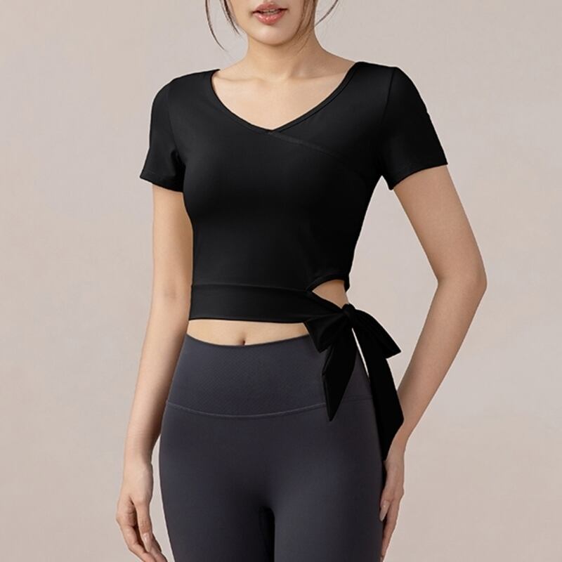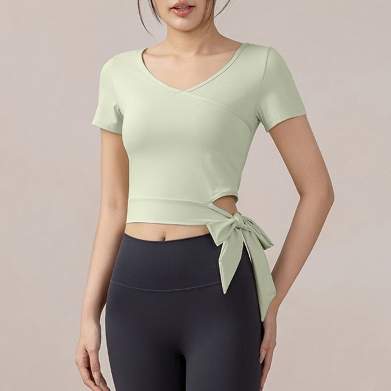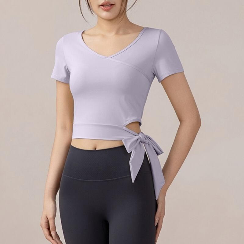【商品管理番号】 F0050 【商品説明】 サイドのカットアウトとリボンがセクシーな半袖Tシャツです。アシンメトリーなデザインがおしゃれで、ミニマルなシルエットがボディラインを整えます。カジュアルなスタイルからおしゃれなコーディネートまで、多様なシーンで活躍するアイテムです。お出かけやちょっとした休日のスポーツにぴったりな一着です! 【サイズ】 【S】バスト:77cm/袖丈:16.3cm/着丈:42.5cm 【M】バスト:81cm/袖丈:16.8cm/着丈:44cm 【L】バスト:85cm/袖丈:17.3cm/着丈:45.5cm 【XL】バスト:89cm/袖丈:17.8cm/着丈:47.5cm 【カラー】 グリーン ブラック パープル ベージュ 【素材】 ポリエステル86%、ポリウレタン14%