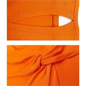 【商品管理番号】 F0052 【商品説明】 ノットをあしらったバックオープンデザインが印象的なセクシーなショート丈Tシャツです。背中が大胆に開いたデザインは、動きやすさを追求し、スポーツシーンから日常のお出かけまで、さまざまなシチュエーションにマッチします。目を引くデザイン性で、あなたのアクティブライフをサポートします! 【サイズ】 【S】バスト:76cm/袖丈:14cm/着丈:50cm 【M】バスト:80cm/袖丈:15cm/着丈:51cm 【L】バスト:84cm/袖丈:15cm/着丈:52cm 【XL】バスト:88cm/袖丈:16cm/着丈:53cm 【カラー】 ホワイト グレー オレンジ グリーン 【素材】 ナイロン85%/ポリウレタン15%