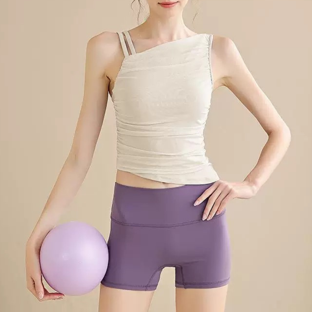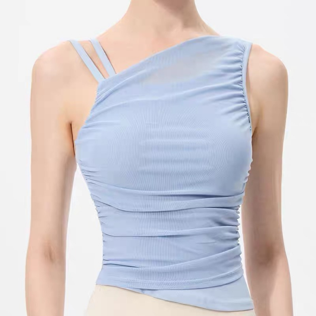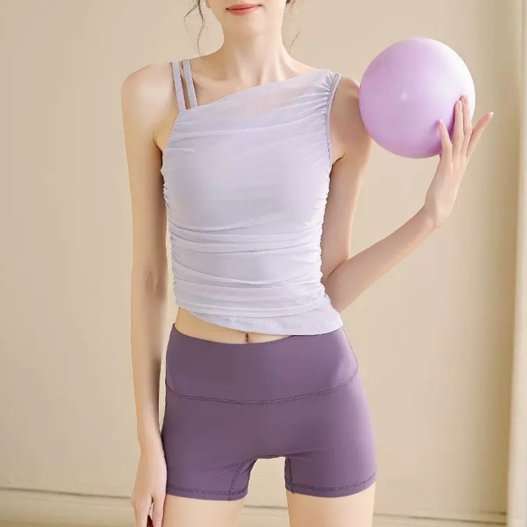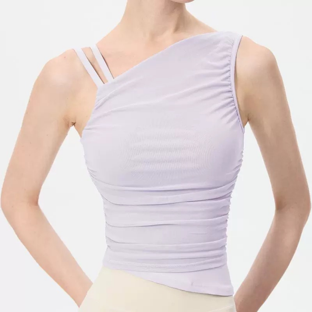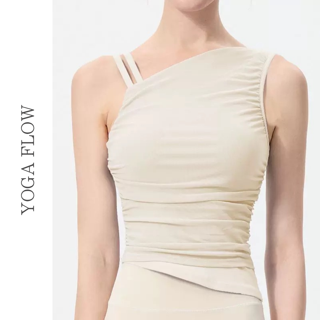 【商品管理番号】 F0111 【商品説明】 片側に2本のストラップを配したアシンメトリーデザインのタンクトップ。 身体にフィットするシルエットと、ギャザーによる陰影が立体的なラインを演出します。 ワンショルダーの抜け感がスタイルに軽さを加え、動きやすさも兼ね備えています。 ヨガやトレーニング時にも、洗練された印象を与えてくれます。 【サイズ】 【S】バスト:64cm/着丈:48cm/ウエスト:58cm 【M】バスト:68cm/着丈:49.5cm/ウエスト:62cm 【L】バスト:72cm/着丈:51cm/ウエスト:66cm 【XL】バスト:76cm/着丈:52.5cm/ウエスト:70cm 【カラー】 アプリコット パープル ブルー