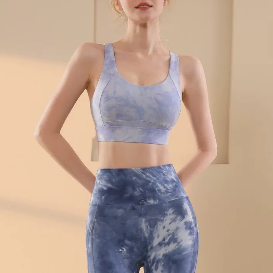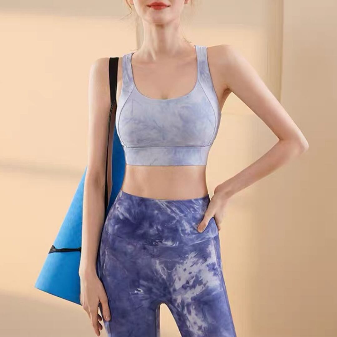 【商品管理番号】 F0121 【商品説明】 マーブル模様のニュアンスカラーが印象的なクロスバックデザインのヨガブラ。 背中のストラップが美しいラインを引き立て、動きやすさと安定感を両立。 ホック仕様で着脱もしやすく、しっかりフィットしてズレにくい設計です。 トレーニングはもちろん、デイリーウェアとしても着こなせる一枚。 【サイズ】 【S】バスト:60/66cm/着丈:30cm 【M】バスト:62/70cm/着丈:31cm 【L】バスト:66/74cm/着丈:33cm 【カラー】 ラベンダー ブラック ブルー