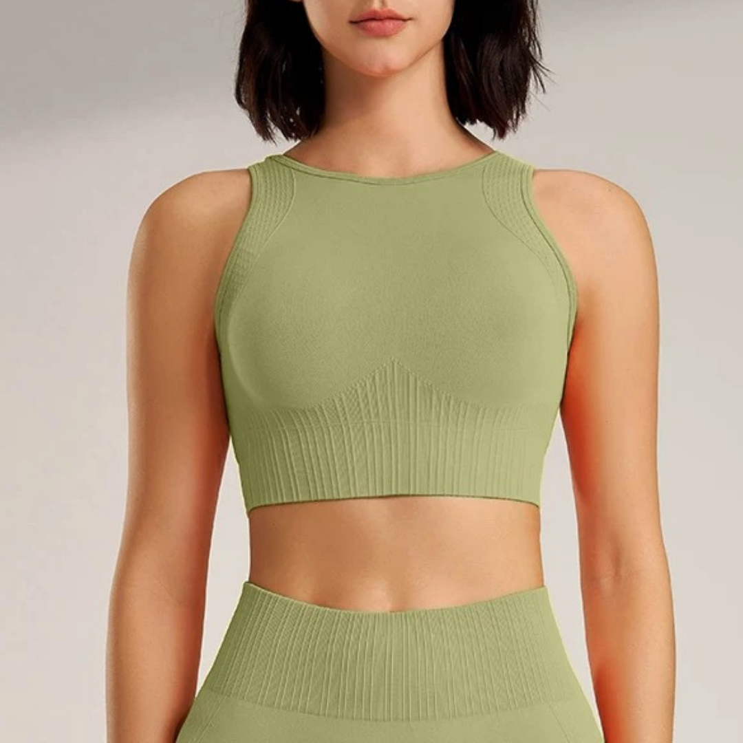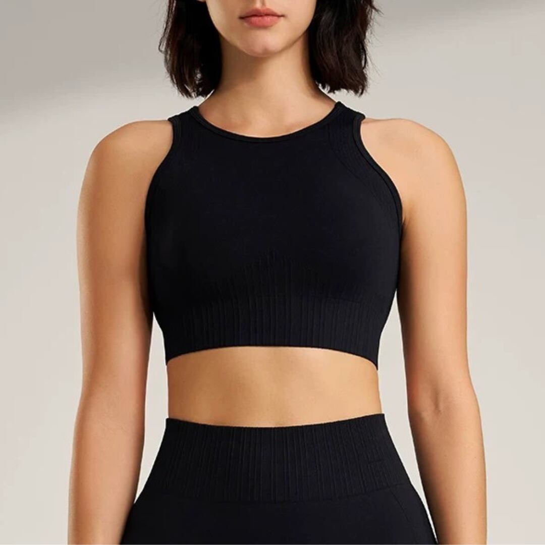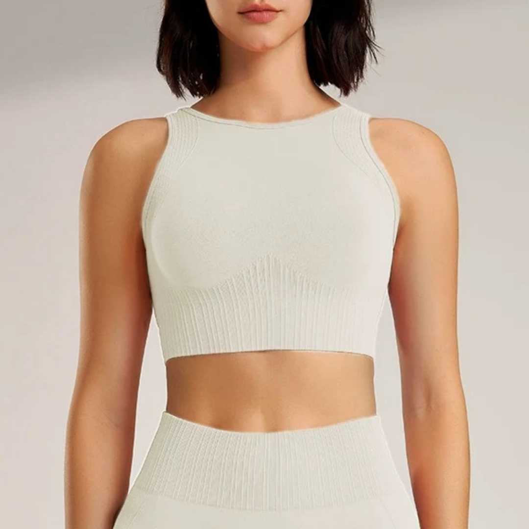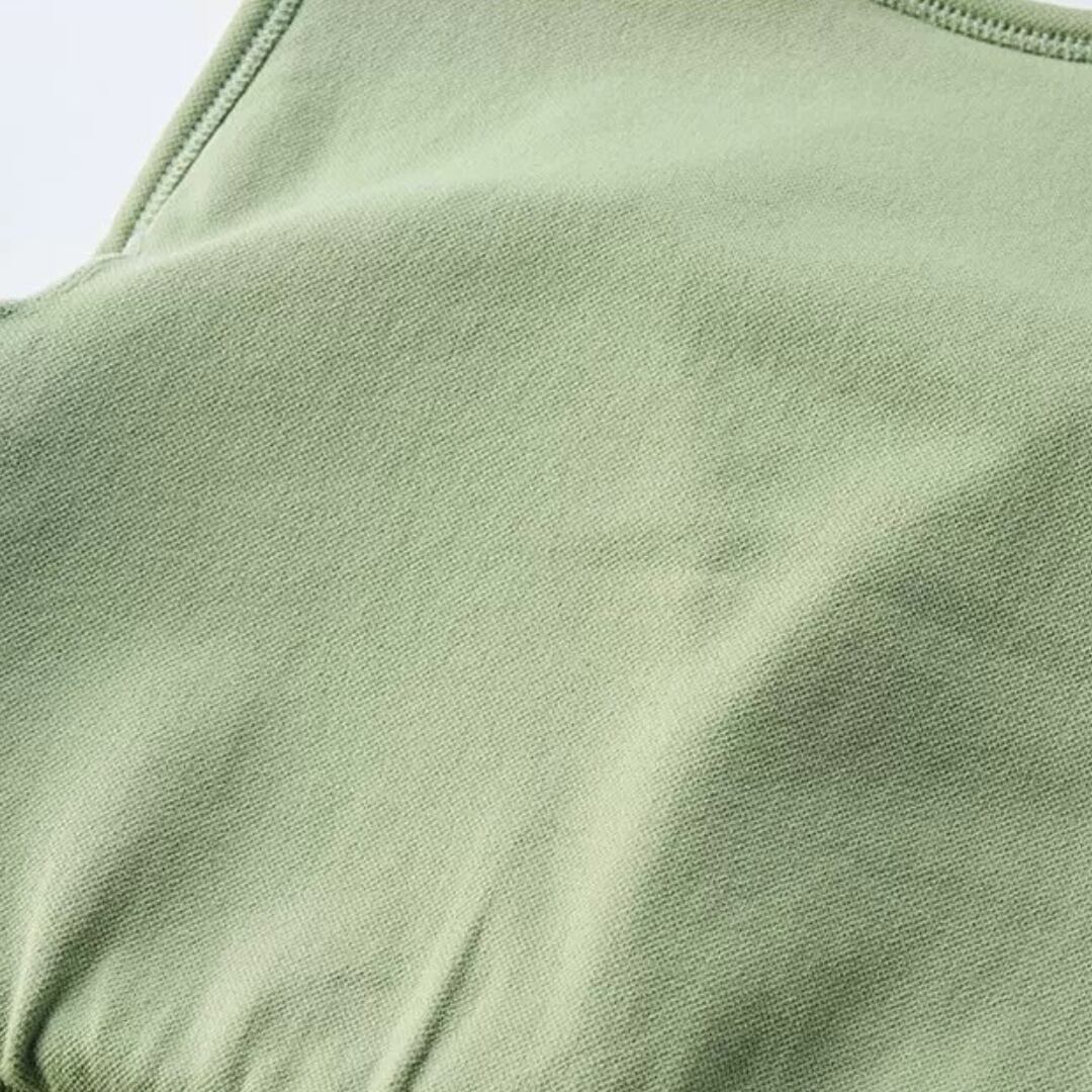 【商品管理番号】 F0122 【商品説明】 伸びのあるリブ編みが身体にやさしくフィットします。 胸もとの切り替えが自然な丸みを整え、動きやすくすっきりとした印象に仕上げています。 ヨガやワークアウトの時間を快適に過ごせる、シンプルで合わせやすいデザインです。 【サイズ】 【S】バスト:72cm/着丈:36.5cm/袖丈:15.5cm 【M】バスト:76cm/着丈:37.5cm/袖丈:16cm 【L】バスト:80cm/着丈:38.5cm/袖丈:16.5cm 【カラー】 グリーン オフホワイト ブラック ピンク オレンジ カーキ 【素材】 ナイロン92%/スパンデックス8%