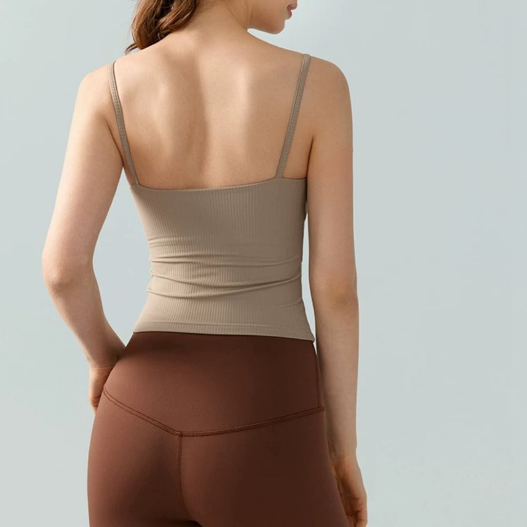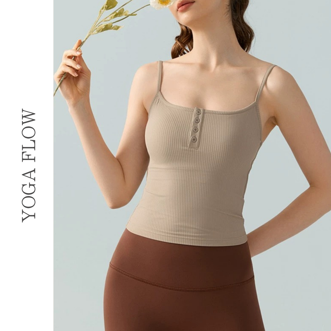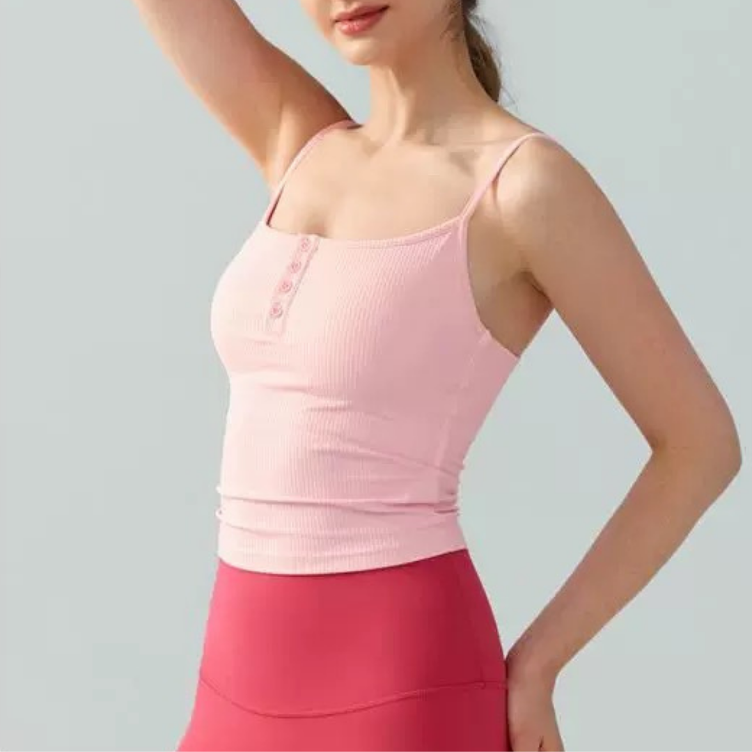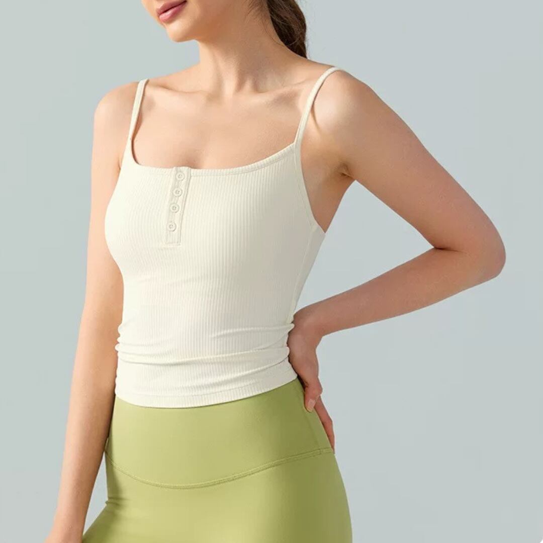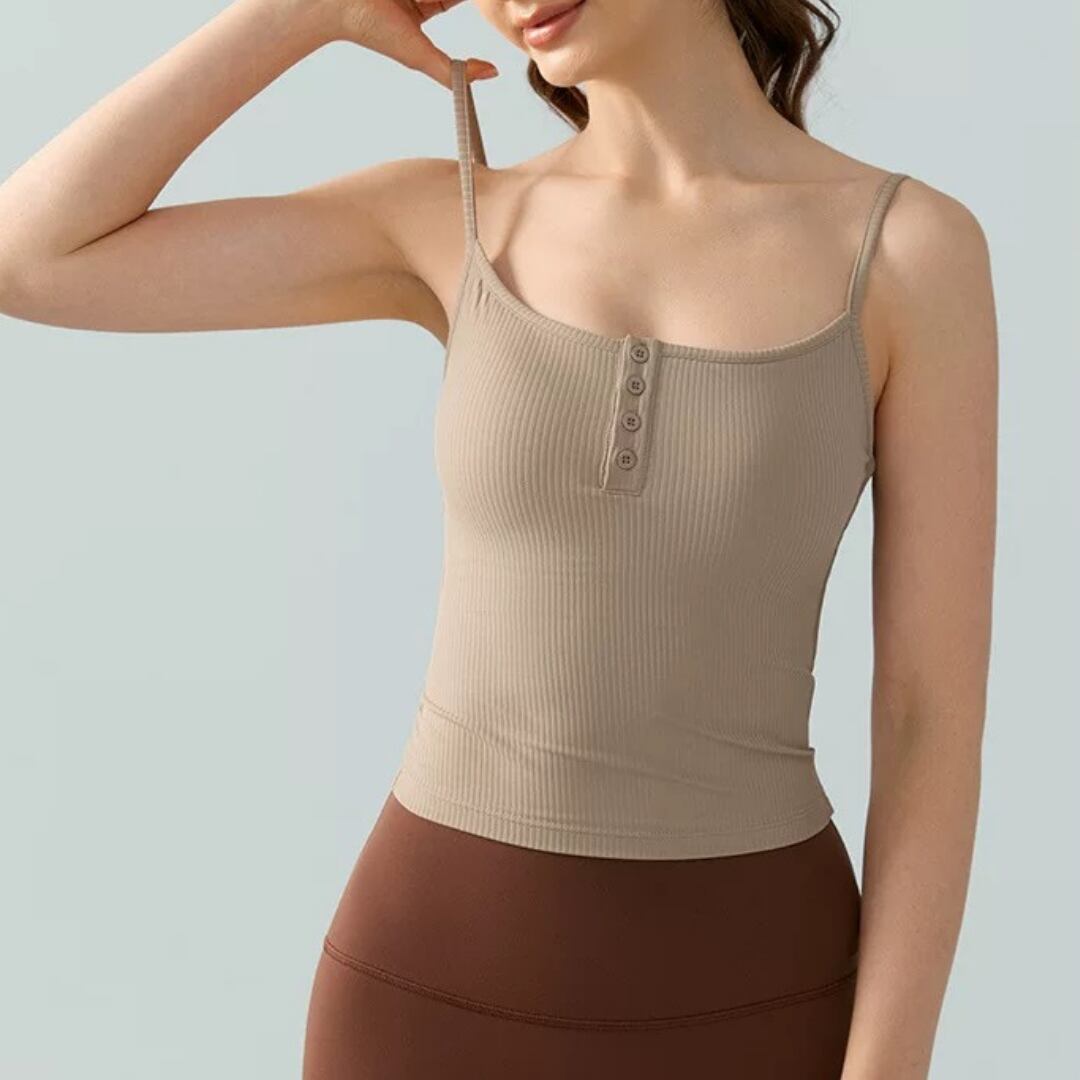 【商品管理番号】 F0128 【商品説明】 細めのストラップとフロントボタンがポイントのリブキャミソールです。 柔らかく伸縮性のある素材で体にフィットし、ヨガやトレーニング中も快適です。 1枚でもインナーとしても着やすい、シンプルで上品なデザインです。 【サイズ】 【S】バスト:62cm/着丈:40cm/ウエスト:56cm 【M】バスト:66cm /着丈:41cm /ウエスト:60cm 【L】バスト:70cm /着丈:42cm /ウエスト:64cm 【XL】バスト:74cm /着丈:43cm /ウエスト:68cm 【カラー】 カーキ ピンク アイボリー ブラック パープル グリーン ブルー 【素材】 ナイロン78%/スパンデックス22%