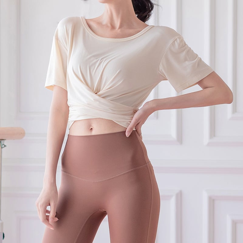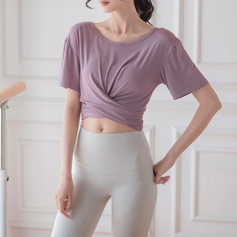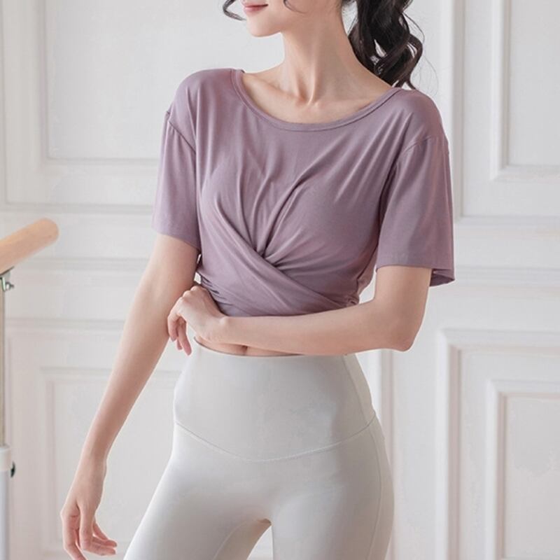 【商品管理番号】 F0060 【商品説明】 フロントクロスデザインが印象的でセクシーなショート丈Tシャツです。バックのノットがアクセントになっており、短めでミニマルなデザインは動きやすさを追求し、スポーツシーンから日常のお出かけまでさまざまなシチュエーションにマッチします。シンプルでこなれたデザインで、あなたのアクティブライフをサポートします! 【サイズ】 【S】バスト:78cm/袖丈:18cm/肩幅:48cm/裾まわり:62cm/着丈:41cm 【M】バスト:82cm/袖丈:19cm/肩幅:50cm/裾まわり:66cm/着丈:43cm 【L】バスト:86cm/袖丈:20cm/肩幅:52cm/裾まわり:70cm/着丈:45cm 【XL】バスト:90cm/袖丈:21cm/肩幅:54cm/裾まわり:74cm/着丈:47cm 【カラー】 ブラウン パープル オフホワイト グレー 【素材】 レーヨン90%/ポリウレタン10%