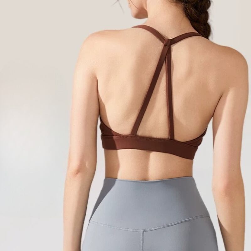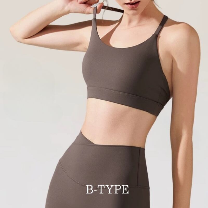 【商品管理番号】 F0077 【商品説明】 バックオープンで大胆なストラップデザインがこなれたスポーツブラです。カジュアルな質感とセクシーなデザインが絶妙に融合しており、大人の女性にぴったりのスタイルを提供します。シンプルなデザインで、あなたのアクティブライフをサポートします! 【サイズ】 【S】バスト:32cm/アンダーバスト:28cm/着丈(肩紐を除く):15cm 【M】バスト:34cm/アンダーバスト:30cm/着丈(肩紐を除く):16cm 【L】バスト:36cm/アンダーバスト:32cm/着丈(肩紐を除く):16.5cm 【XL】バスト:38cm/アンダーバスト:34cm/着丈(肩紐を除く):17cm 【カラー】 ピンク A-TYPE ブラウン ブラック グレー B-TYPE ダークブラウン オフホワイト 【素材】 ナイロン75%/ポリウレタン25%