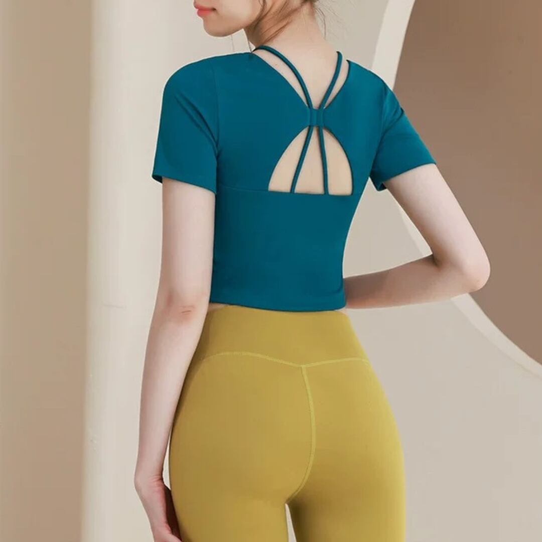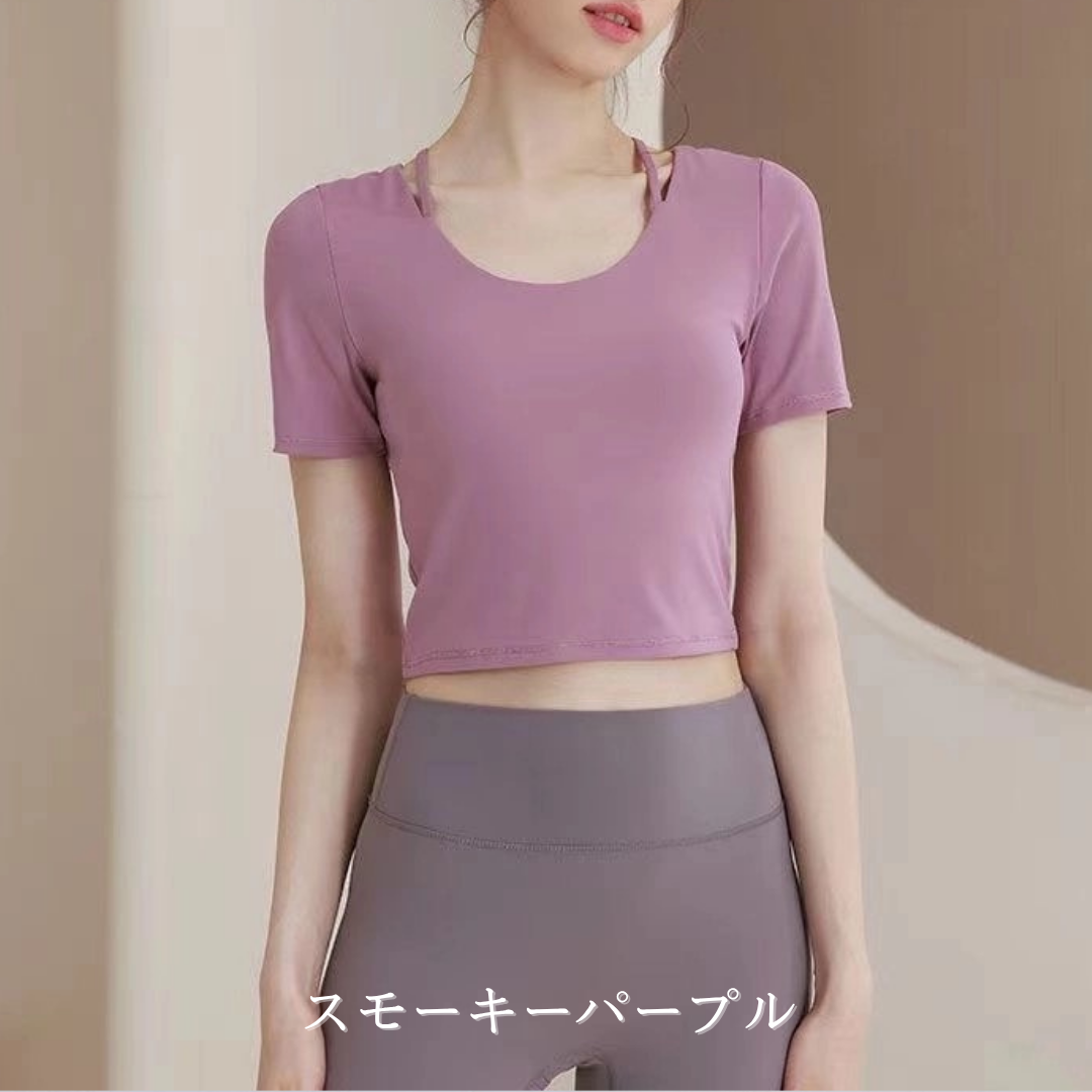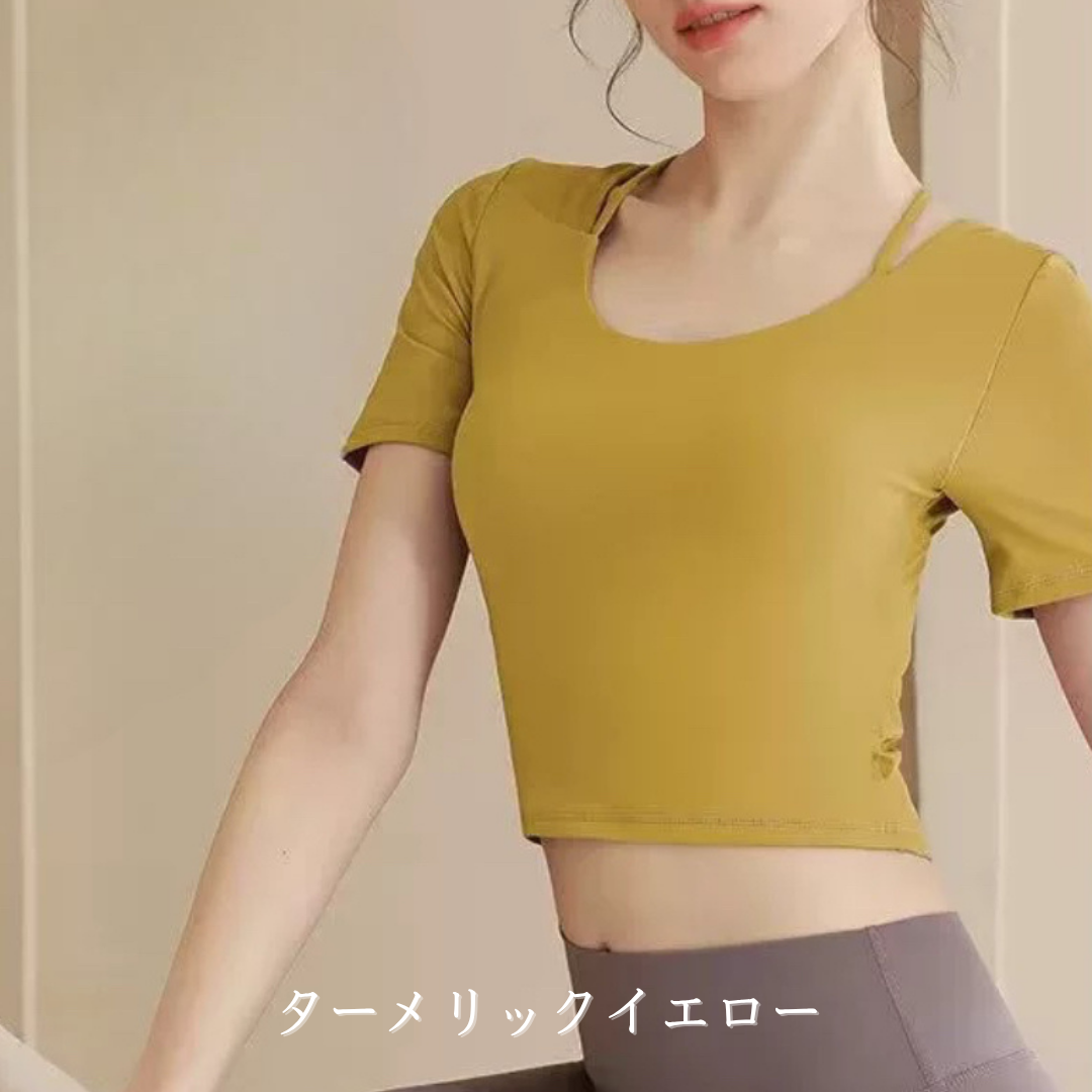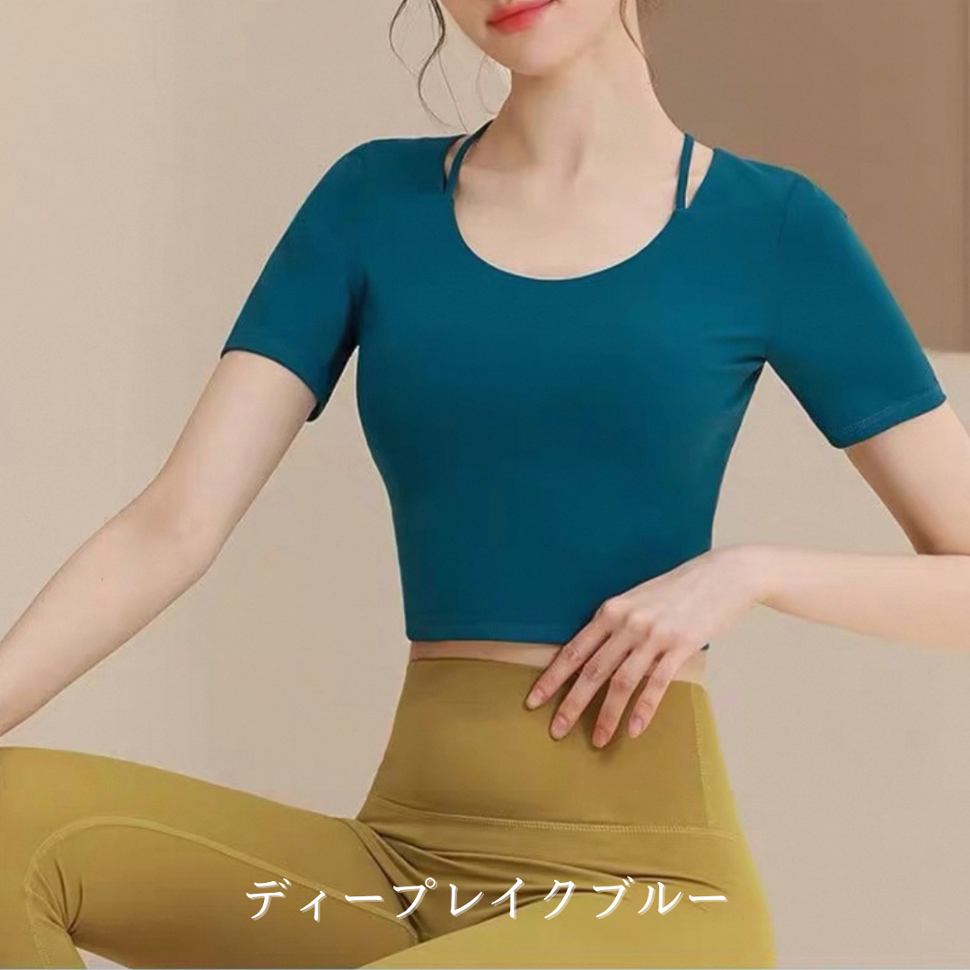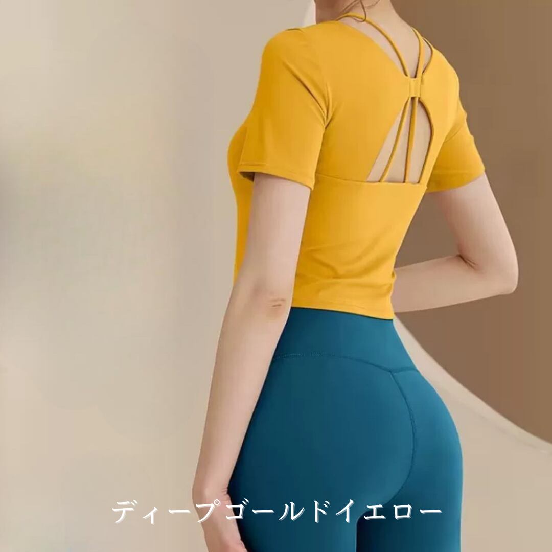 【商品管理番号】 F0135 【商品説明】 背中のクロスストラップが特徴的なショート丈トップスです。 すっきりとしたシルエットで動きやすく、美しいラインを引き立てます。 どんなカラーもスタイリッシュに映えるデザインで、トレーニングからデイリーまで幅広く活躍します。 【サイズ】 【S】バスト:76cm/着丈:41cm/裾周り:64cm 【M】バスト:80cm/着丈:42cm /裾周り:68cm 【L】バスト:84cm/着丈:43cm /裾周り:72cm 【XL】バスト:88cm/着丈:44cm /裾周り:76cm 【カラー】 スモーキーパープル ディープレイクブルー ターメリックイエロー ディープゴールドイエロー ブラック 【素材】 ナイロン75%/ポリウレタン25%