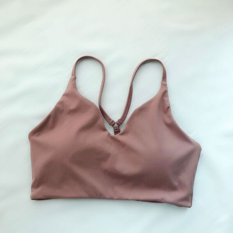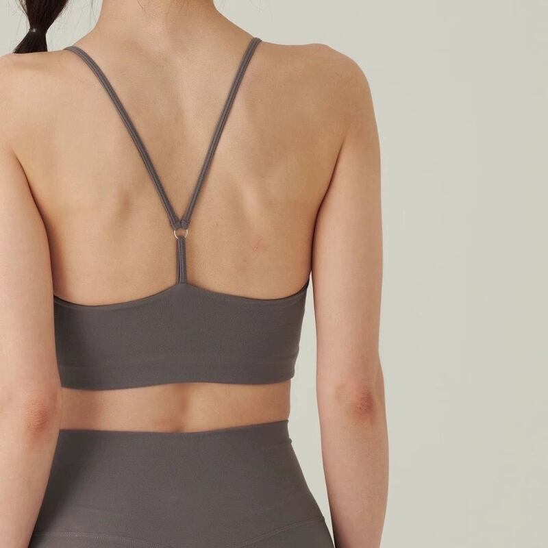 バックのストラップデザインがさり気なく華やかなブラキャミソールです。カジュアルな質感とセクシーなデザインが絶妙に融合しており、大人の女性にぴったりのスタイルを提供します。シンプルでこなれたデザインで、あなたのアクティブライフをサポートします!