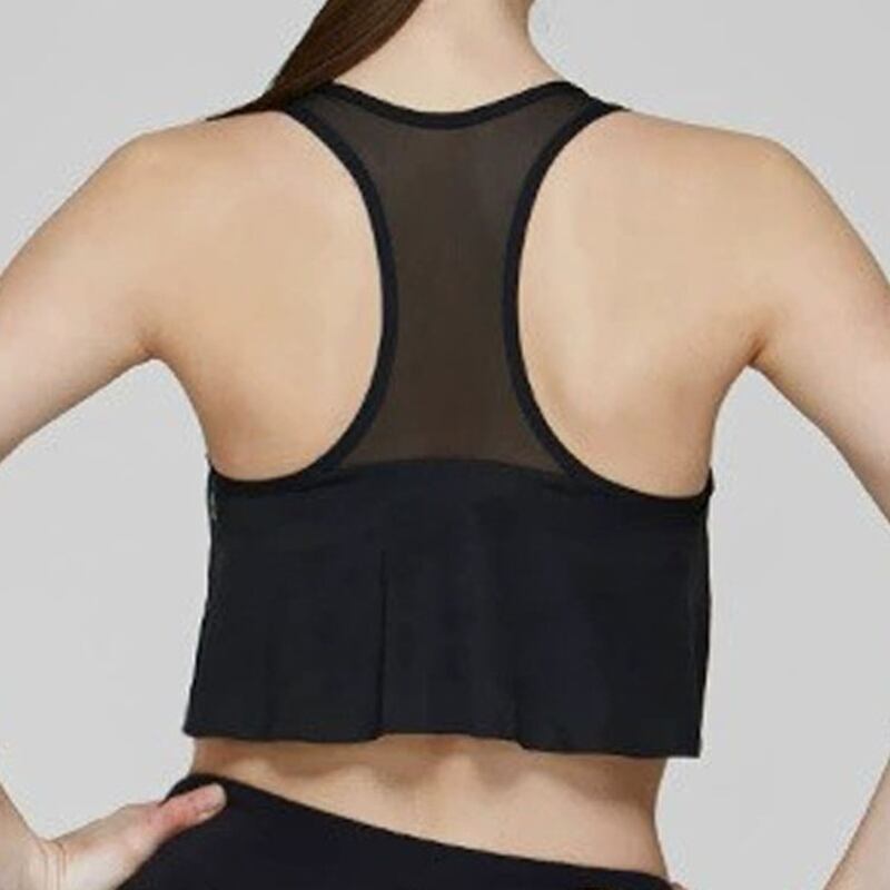 【商品管理番号】 F0099 【商品説明】 メッシュ切り替えとフレア感が上品なバックオープンデザインがこなれたブラタンクトップです。カジュアルな質感とセクシーなデザインが絶妙に融合しており、大人の女性にぴったりのスタイルを提供します。シンプルなデザインで、あなたのアクティブライフをサポートします! 【サイズ】 【S】バスト:66cm/ウエスト:60cm/着丈:37.5cm 【M】バスト:70cm/ウエスト:64cm/着丈:38cm 【L】バスト:74cm/ウエスト:68cm/着丈:40cm 【カラー】 ブラック ホワイト 【素材】 ナイロン75%/ポリウレタン25%