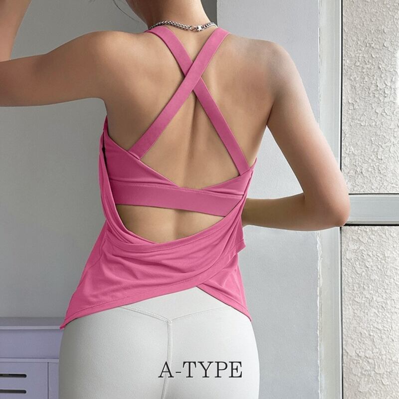 【商品管理番号】 F0207 【商品説明】 バックの大胆なクロスストラップデザインがこなれたブラタンクトップです。カジュアルな質感とセクシーなデザインが絶妙に融合しており、大人の女性にぴったりのスタイルを提供します。シンプルなデザインで、あなたのアクティブライフをサポートします! 【サイズ】 【S】バスト:68cm/裾まわり:64cm/着丈:34.8cm 【M】バスト:72cm/裾まわり:68cm/着丈:36.5cm 【L】バスト:76cm/裾まわり:72cm/着丈:38.5cm 【カラー】 オフホワイト グリーン A-TYPE ピンク ピーコックブルー ブラック B-TYPE ライトピンク 【素材】 ナイロン75%/ポリウレタン25%