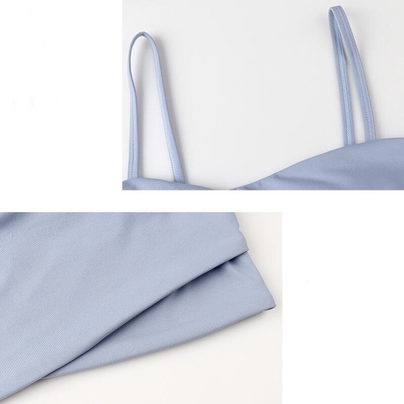 【商品管理番号】 F0210 【商品説明】 細めのストラップとフロントのクロスデザインが華やかなブラキャミソールです。カジュアルな質感とセクシーなデザインが絶妙に融合しており、大人の女性にぴったりのスタイルを提供します。シンプルなこなれ感で、あなたのアクティブライフをサポートします! 【サイズ】 【S】バスト:70cm/肩紐丈:28cm/着丈:33cm 【M】バスト:74cm/肩紐丈:28.8cm/着丈:34cm 【L】バスト:78cm/肩紐丈:29.6cm/着丈:35cm 【XL】バスト:82cm/肩紐丈:30.4cm/着丈:36cm 【カラー】 ブルー ブラック ホワイト ライトグリーン 【素材】 ナイロン80%/ポリウレタン20%