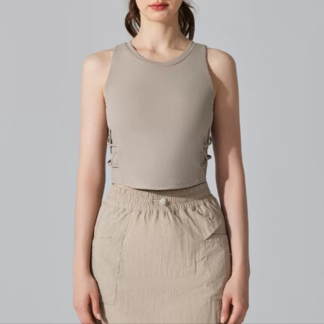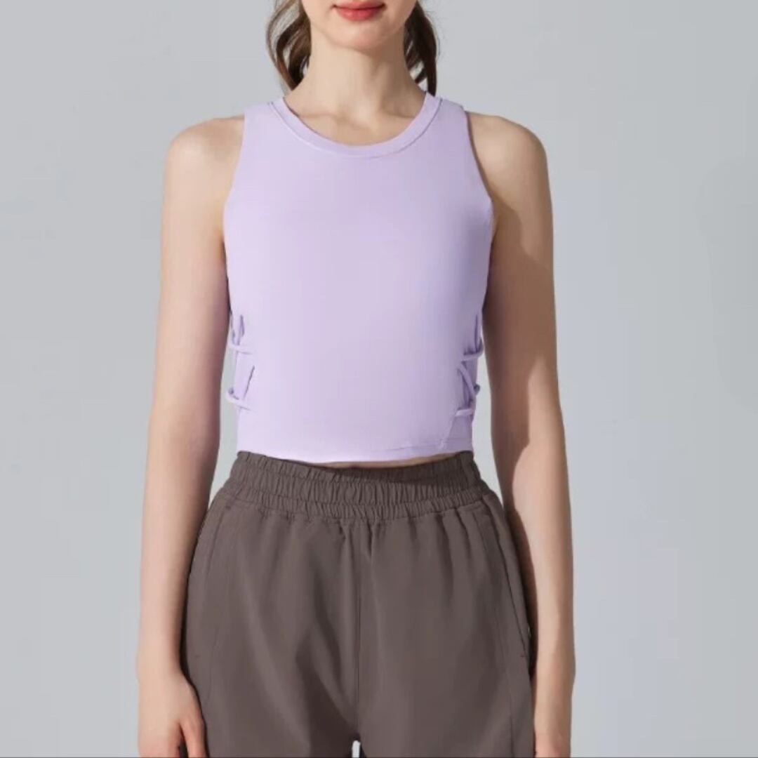 【商品管理番号】 F0137 【商品説明】 サイドのクロスデザインがポイントのショートタンクです。 程よく開いたアームラインが動きを妨げず、スタイリッシュな印象に。 コンパクトな丈感で脚長効果もあり、ハイウエストボトムとも好相性。 ヨガやワークアウトはもちろん、デイリーコーデにも取り入れやすいアイテムです。 【サイズ】 【S】肩幅:2.5cm/バスト:37m/裾まわり:33cm/着丈:43.5cm 【M】肩幅:2.5cm/バスト:39cm/裾まわり:35cm/着丈:44.5cm 【L】肩幅:2.5cm/バスト:41cm/裾まわり:37cm/着丈:45.5cm 【XL】肩幅:2.5cm/バスト:43cm/裾まわり:39cm/着丈:46.5cm 【カラー】 カーキ ブラウン ブラック ライトグリーン パープル 【素材】 ナイロン81%/ポリウレタン19%