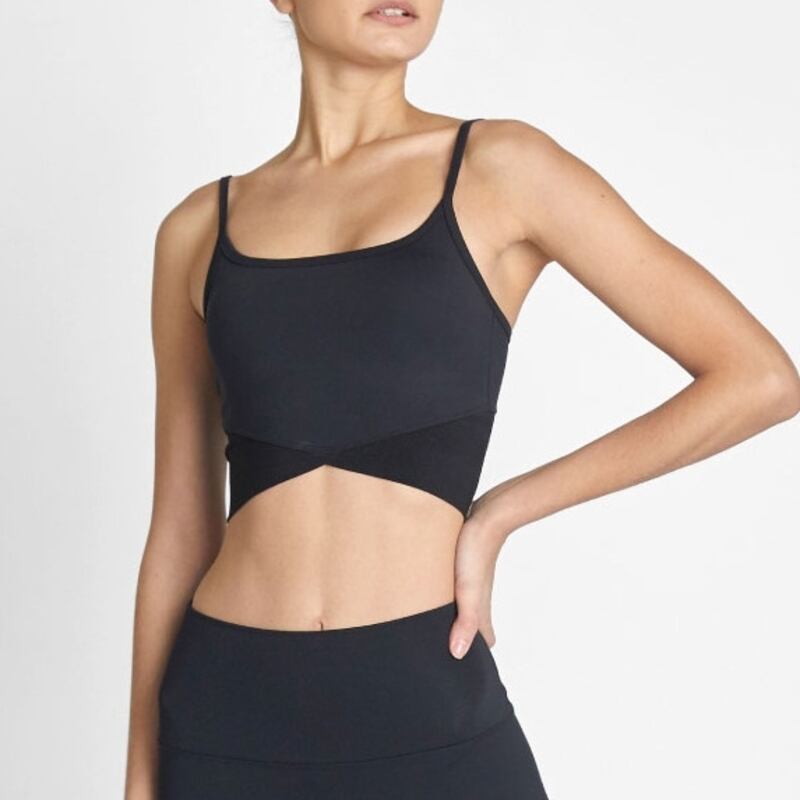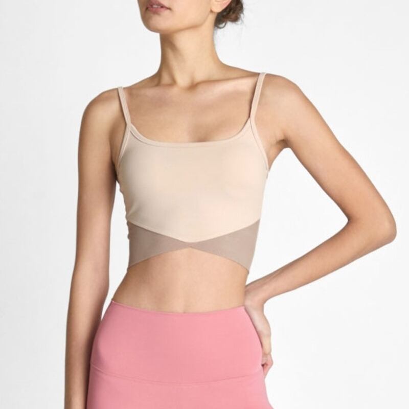 細めのストラップと広めに開いたバックデザインが華やかなブラキャミソールです。カジュアルな質感とセクシーなデザインが絶妙に融合しており、バイカラー切り替えがシックな大人の女性にぴったりのスタイルを提供します。シンプルなこなれ感で、あなたのアクティブライフをサポートします!