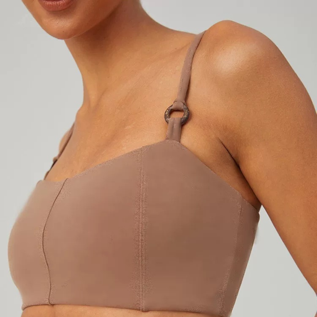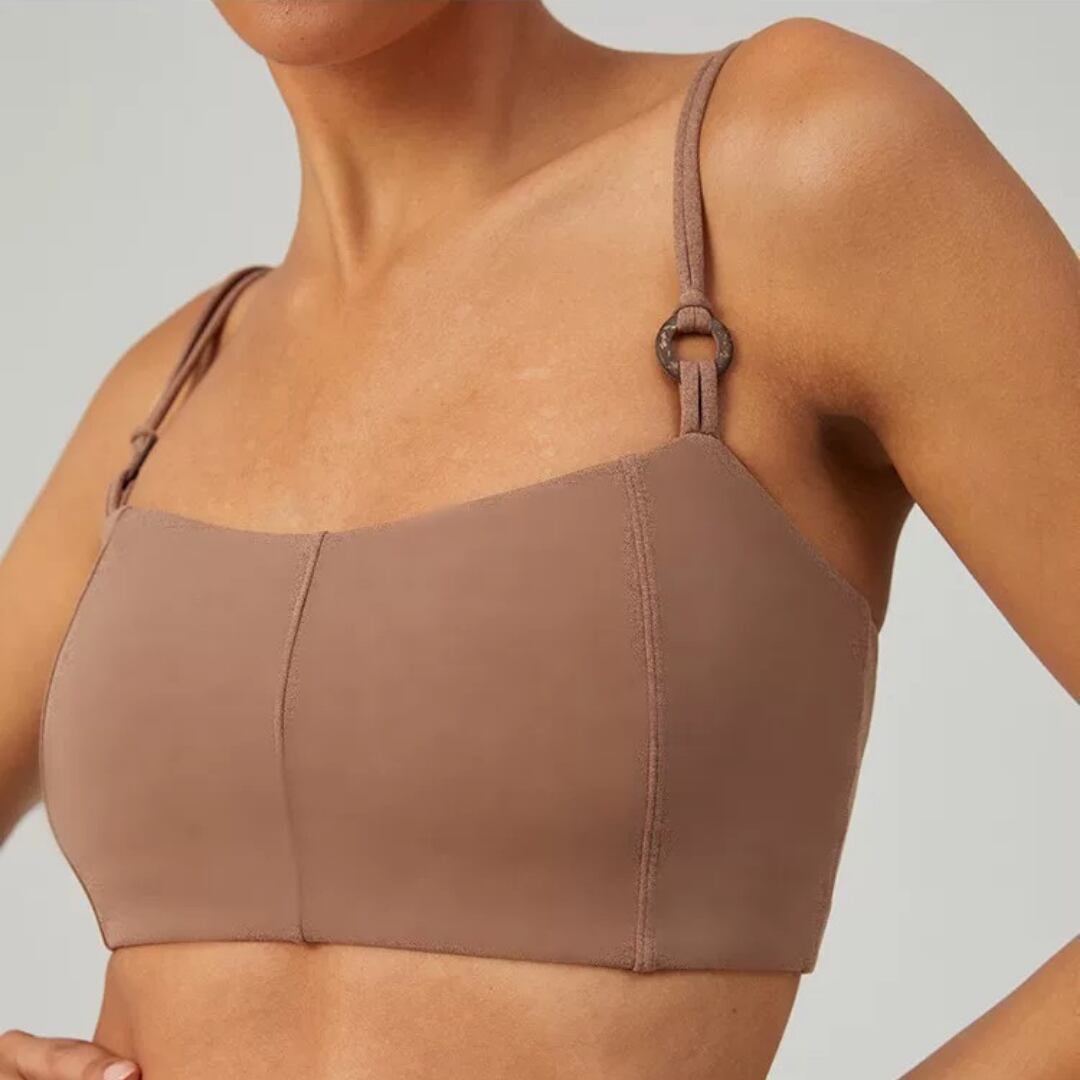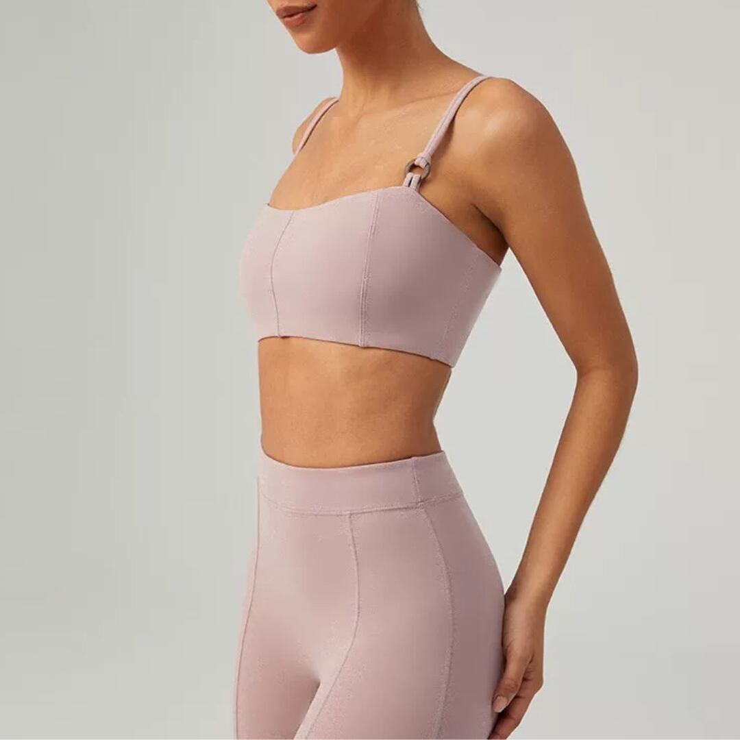 【商品管理番号】 F0139 【商品説明】 ストラップにあしらわれたリングデザインがアクセントのブラトップです。 すっきりとしたスクエアネックがデコルテを美しく見せ、シンプルながら洗練された印象に。 安定感のある幅広アンダーで動きやすく、ヨガやトレーニング時も快適。 落ち着いたカラーで大人のヘルシースタイルを叶えます。 【サイズ】 【S】バスト:65-75cm 【M】バスト:75-80cm 【L】バスト:80-85cm 【カラー】 ブラウン ピンク 【素材】 ナイロン75%/ポリウレタン25%