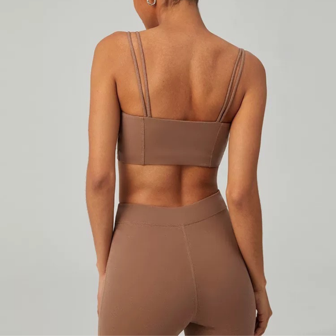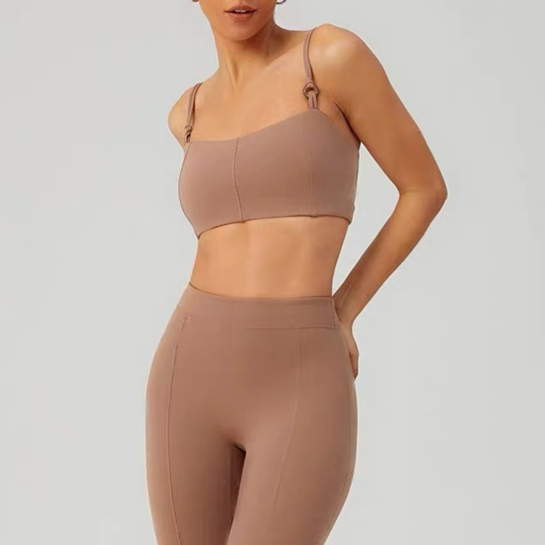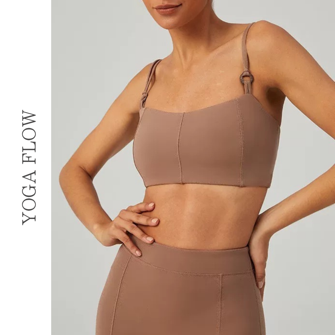 【商品管理番号】 F0139 【商品説明】 ストラップにあしらわれたリングデザインがアクセントのブラトップです。 すっきりとしたスクエアネックがデコルテを美しく見せ、シンプルながら洗練された印象に。 安定感のある幅広アンダーで動きやすく、ヨガやトレーニング時も快適。 落ち着いたカラーで大人のヘルシースタイルを叶えます。 【サイズ】 【S】バスト:65-75cm 【M】バスト:75-80cm 【L】バスト:80-85cm 【カラー】 ブラウン ピンク 【素材】 ナイロン75%/ポリウレタン25%