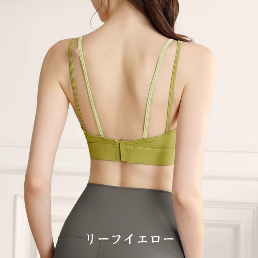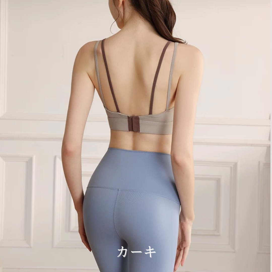 【商品管理番号】 F0140 【商品説明】 異なるトーンのストラップがアクセントになったバイカラーブラトップです。 背中を美しく見せるダブルストラップデザインで、動きの中にも上品な抜け感をプラス。 フロントはすっきりとしたラウンドネックで、ナチュラルな女性らしさを演出します。 ヨガやピラティスなど、アクティブシーンにぴったりの一枚です。 【サイズ】 【S】バスト:66m/裾まわり:56cm/着丈:26cm 【M】バスト:70cm/裾まわり:60cm/着丈:27cm 【L】バスト:74cm/裾まわり:64cm/着丈:28cm 【XL】バスト:78cm/裾まわり:68cm/着丈:29cm 【カラー】 カーキ ブラック ライトグリーン リーフイエロー ピンク 【素材】 ナイロン75%/ポリウレタン25%