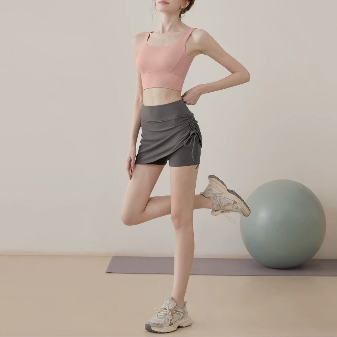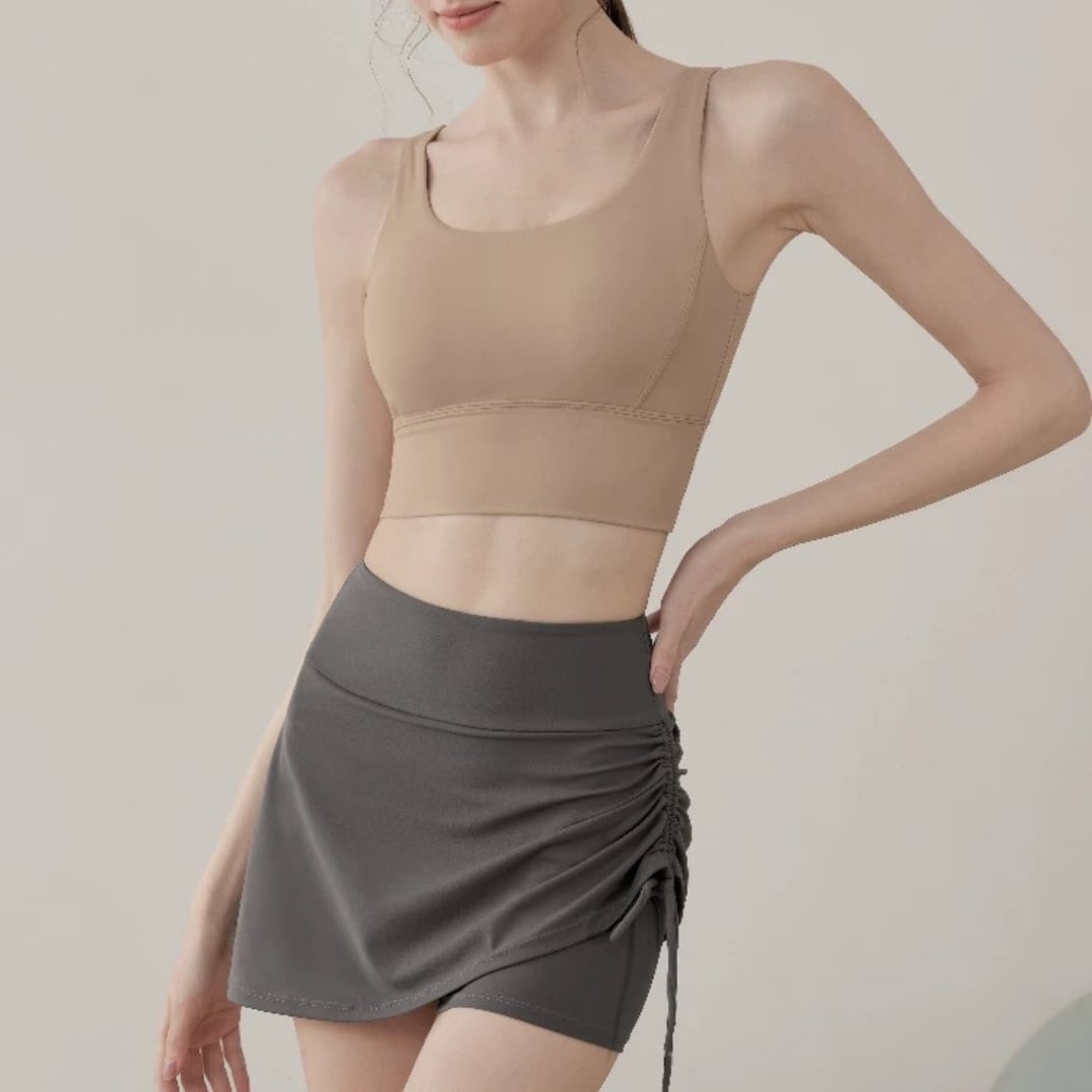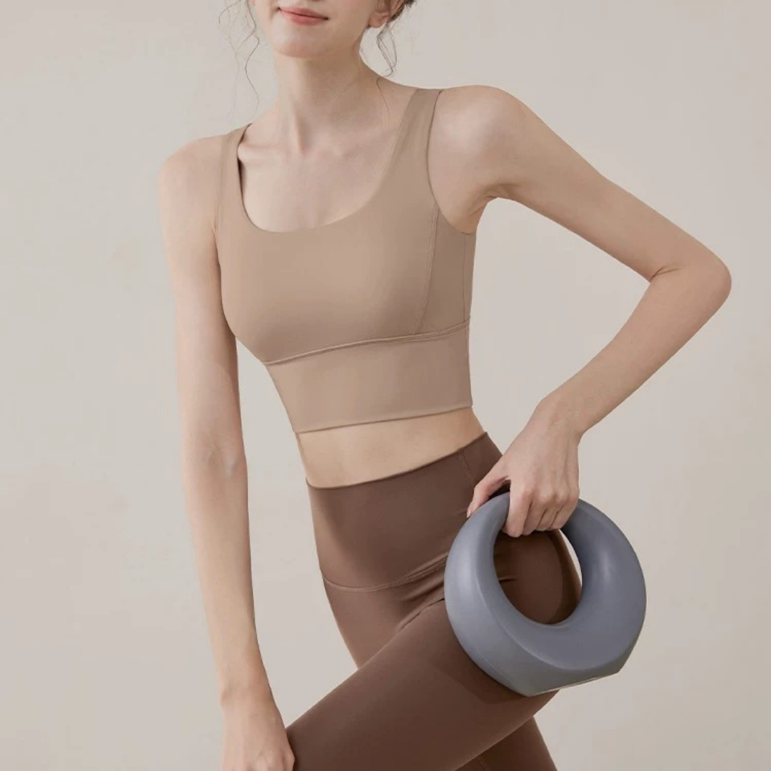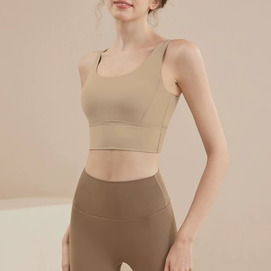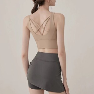 【商品管理番号】 F0141 【商品説明】 背中のクロスストラップが印象的なブラトップです。 安定感のある幅広ショルダーで、動きの多いポーズでも安心の着心地。 シンプルながら女性らしさを引き立てるデザインで、ヨガやデイリーのリラックスタイムにも活躍します。 【サイズ】 【S】バスト:33cm/着丈:35cm/裾周り:27cm 【M】バスト:35cm/着丈:36cm /裾周り:29cm 【L】バスト:37cm/着丈:36.8cm /裾周り:31cm 【XL】バスト:39cm/着丈:37.8cm /裾周り:33cm 【カラー】 ライトブラウン ピンク 【素材】 ナイロン75%/ポリウレタン25%