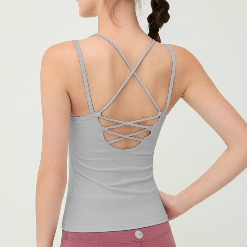 【商品管理番号】 F0227 【商品説明】 バックの大胆なクロスストラップデザインがこなれたブラキャミソールです。カジュアルな質感とセクシーなデザインが絶妙に融合しており、大人の女性にぴったりのスタイルを提供します。シンプルなこなれ感で、あなたのアクティブライフをサポートします! 【サイズ】 【S】バスト:66cm/ウエスト:60cm/裾まわり:64cm/着丈:36cm 【M】バスト:70cm/ウエスト:64cm/裾まわり:68cm/着丈:37cm 【L】バスト:74cm/ウエスト:68cm/裾まわり:72cm/着丈:38cm 【カラー】 ホワイト ブルー グレー 【素材】 ナイロン75%/ポリウレタン25%