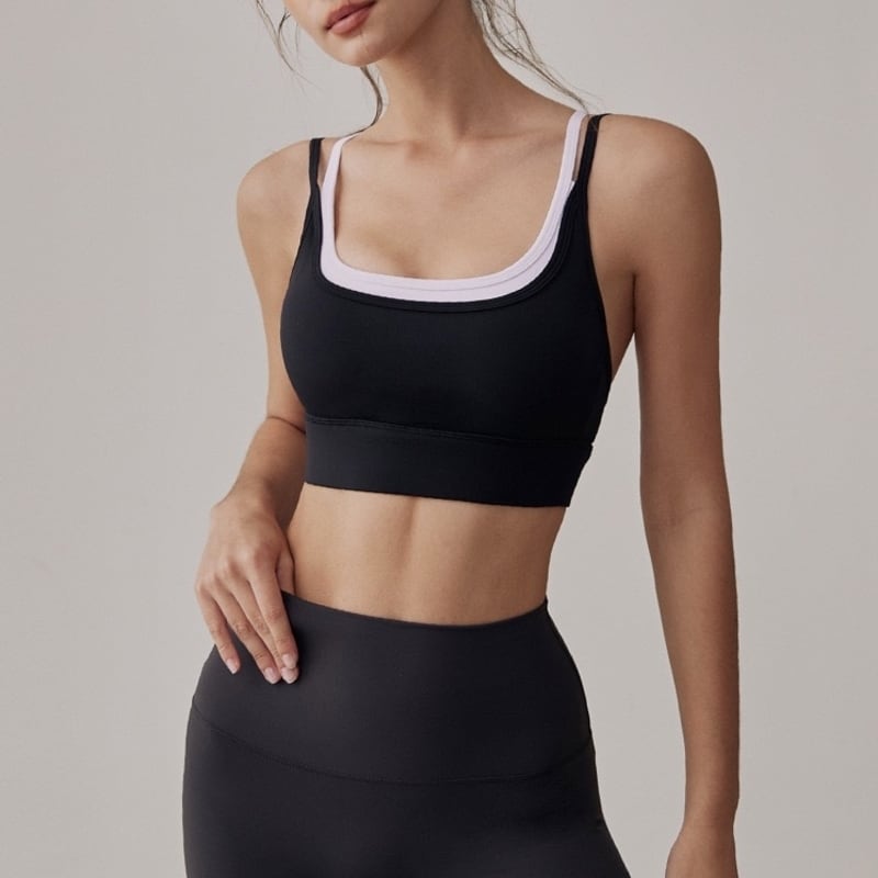 【商品管理番号】 F0242 【商品説明】 バイカラーのフェイクレイヤードデザインがこなれたスポーツブラです。カジュアルな質感とセクシーなデザインが絶妙に融合しており、大人の女性にぴったりのスタイルを提供します。シンプルなデザインで、あなたのアクティブライフをサポートします! 【サイズ】 【S】バスト:66cm/裾まわり:60cm/着丈:29cm 【M】バスト:68cm/裾まわり:62cm/着丈:31cm 【L】バスト:70cm/裾まわり:6cm4/着丈:33cm 【XL】バスト:72cm/裾まわり:66cm/着丈:35cm 【カラー】 ブラック ブルー ピンク 【素材】 ナイロン75%/ポリウレタン25%