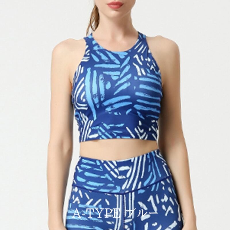 【商品管理番号】 F0243 【商品説明】 自然なバックオープンデザインがこなれたマルチプリントブラタンクトップです。カジュアルな質感とセクシーなデザインが絶妙に融合しており、大人の女性にぴったりのスタイルを提供します。シンプルなデザインで、あなたのアクティブライフをサポートします! 【サイズ】 【S】バスト:72cm/ウエスト:31cm/着丈:35cm/肩紐:40cm 【M】バスト:76cm/ウエスト:33cm/着丈:35.5cm/肩紐:40.8cm 【L】バスト:80cm/ウエスト:35cm/着丈:36cm/肩紐:41.6cm 【XL】バスト:84cm/ウエスト:37cm/着丈:36.5cm/肩紐:42.4cm 【カラー】 A-TYPE ブルー B-TYPE ブルー C-TYPE ブルー A-TYPE ブラック グリーン B-TYPE ブラック ピンク C-TYPE ブラック 【素材】 ナイロン75%/ポリウレタン25%